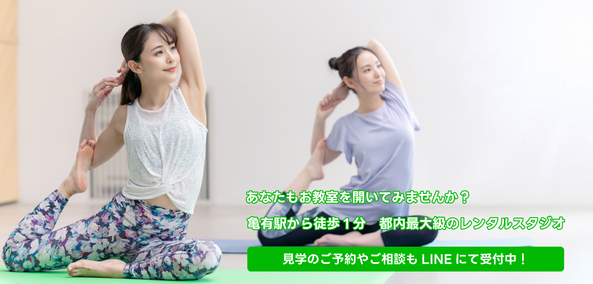 各種コンサートや発表会が行われるかめありリリオホールの隣のビルという好立地で防音仕様のスタジオMも完備していますので、ヨガ・ピラティス・フラ・ベリーダンス・日本舞踊・着付・ベビー・キッズ向け教室等、様々なジャンルのお教室から学習塾や英会話教室まで対応可能です。
